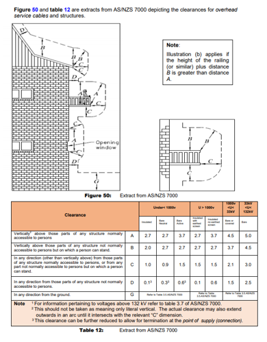 A significant change in the WASIR is in relation to service cable vertical clearances over areas that are not normally accessible to a person, but on which a person can stand.